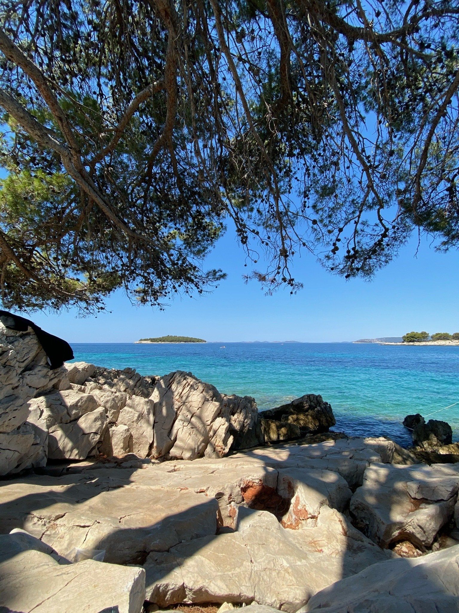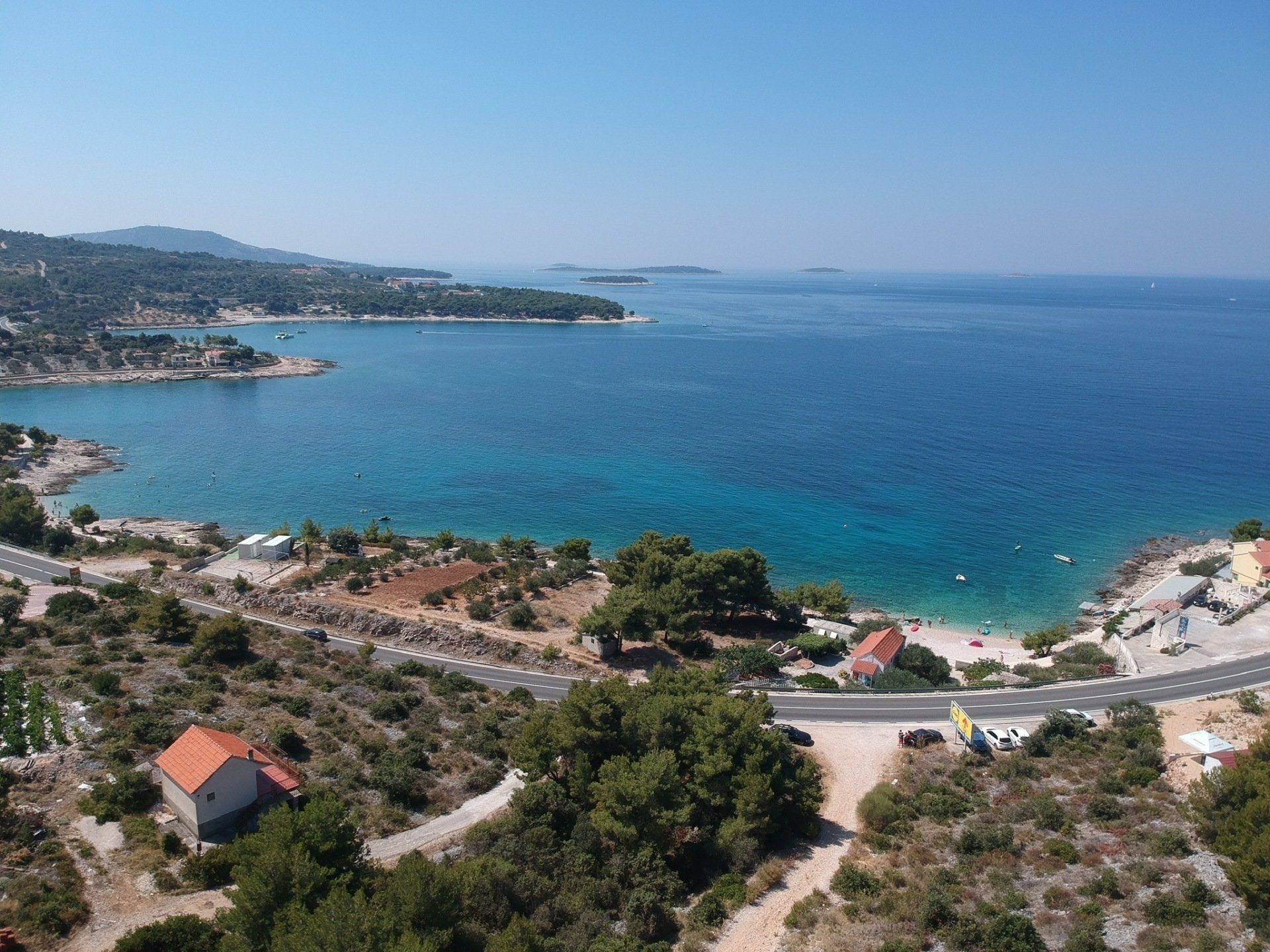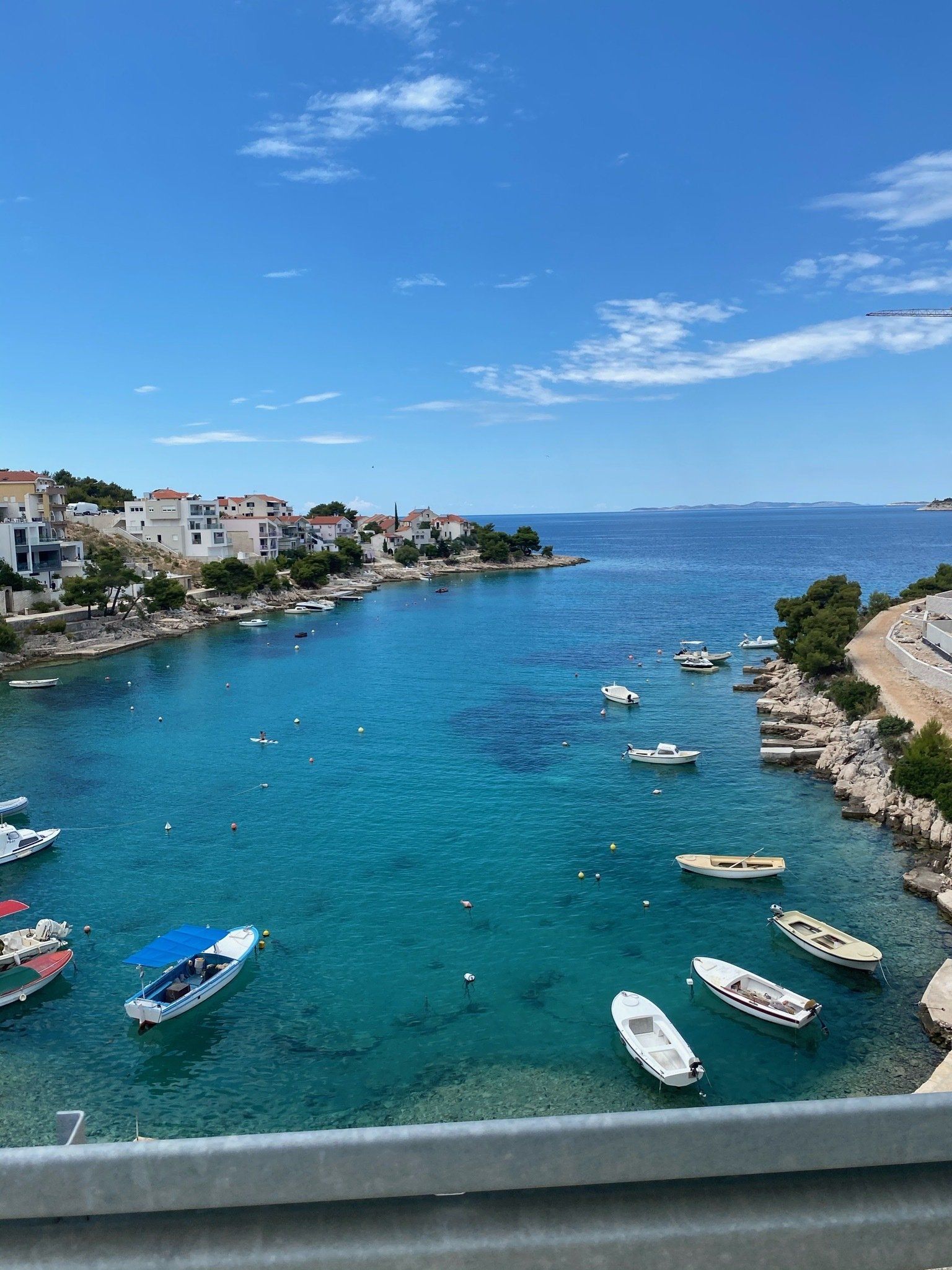 Auf dem Weg dahin machten wir noch einen Stop in Murter und fuhren endlich mal ein paar Kilometer unbefestigte Straßen. Wir hatten Glück und wählten den richtigen Weg in Richtung Meer, sodass wir am letzten Zipfel Murters in eine Sackgasse direkt am Meer gelangten. Wir ließen unsere Drohe steigen und aßen in der Sonne unser Mittagessen, bevor wir uns auf den Weg zur Fähre machten. Als wir dort verweilten kamen die ortsansässigen Fischer mit dem Boot vorbei und freuten sich total unsere Berta zu sehen. Sie winkten uns und gaben uns mehrfach per Handzeichen zu verstehen, dass sie den Van mehr als toll finden :)