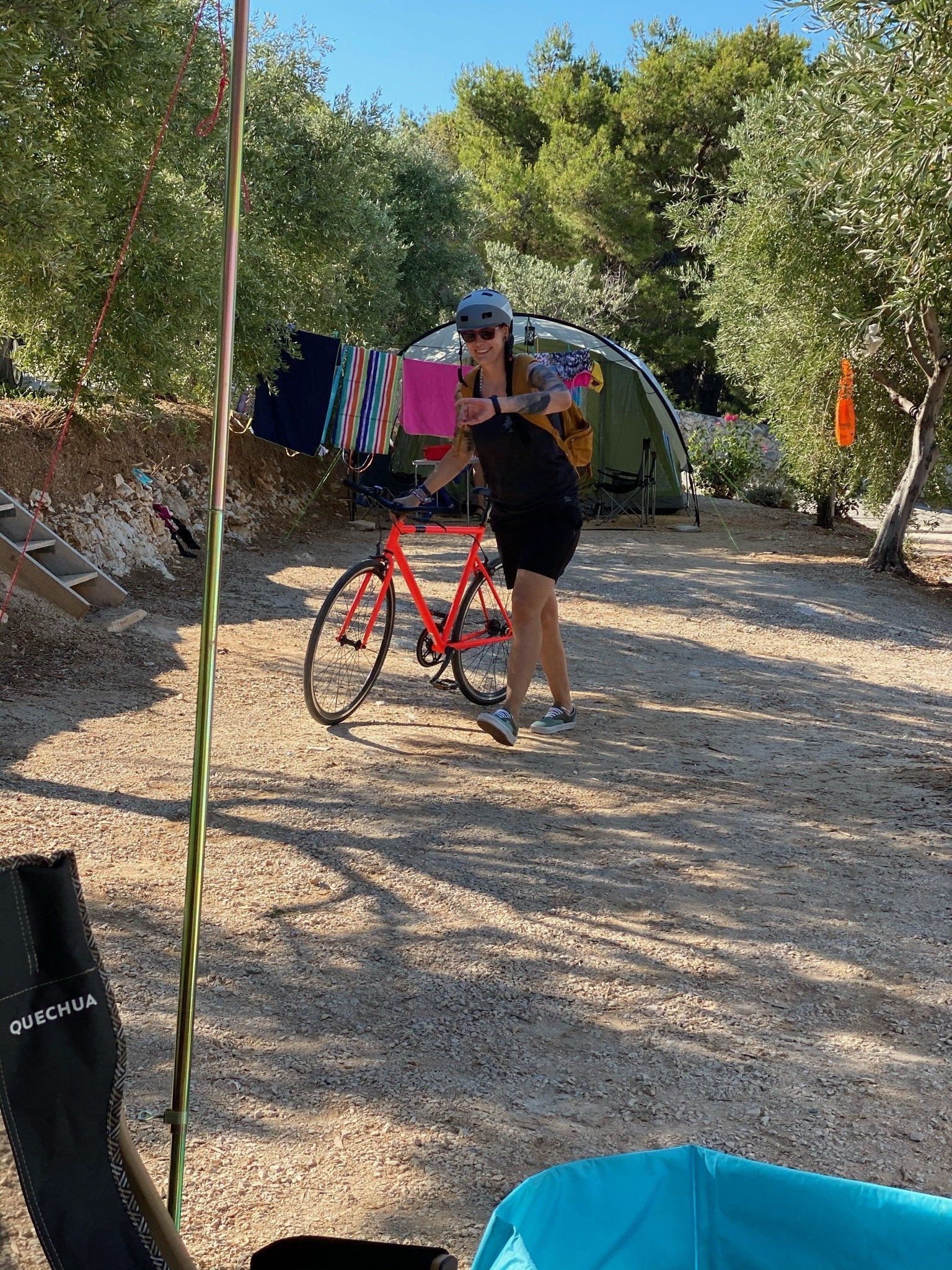Wir freuten uns auf eine Meer, Sonne & Entspannung. Nachdem wir unser Sonnensegel aufgebaut hatten und alles in der Berta seinen Platz gefunden hatte, sprangen wir erstmal ins kühle Nass und erkundeten die Umgebung. Da der Platz etwas außerhalb liegt, sollte man sich vorher mit ein paar Dingen eindeckten. Ein paar Kilometer weiter Richtung Primošten gibt es einen kleinen Konsum, der mit dem Rad gut erreichbar war. Leider muss man dazu ein Stück Küstenstraße fahren, was ich mit dem Rad nicht so angenehm empfinde. Jeden Morgen kam ein Bäckerauto, wo man frisches Brot und Gebäck kaufen konnte.