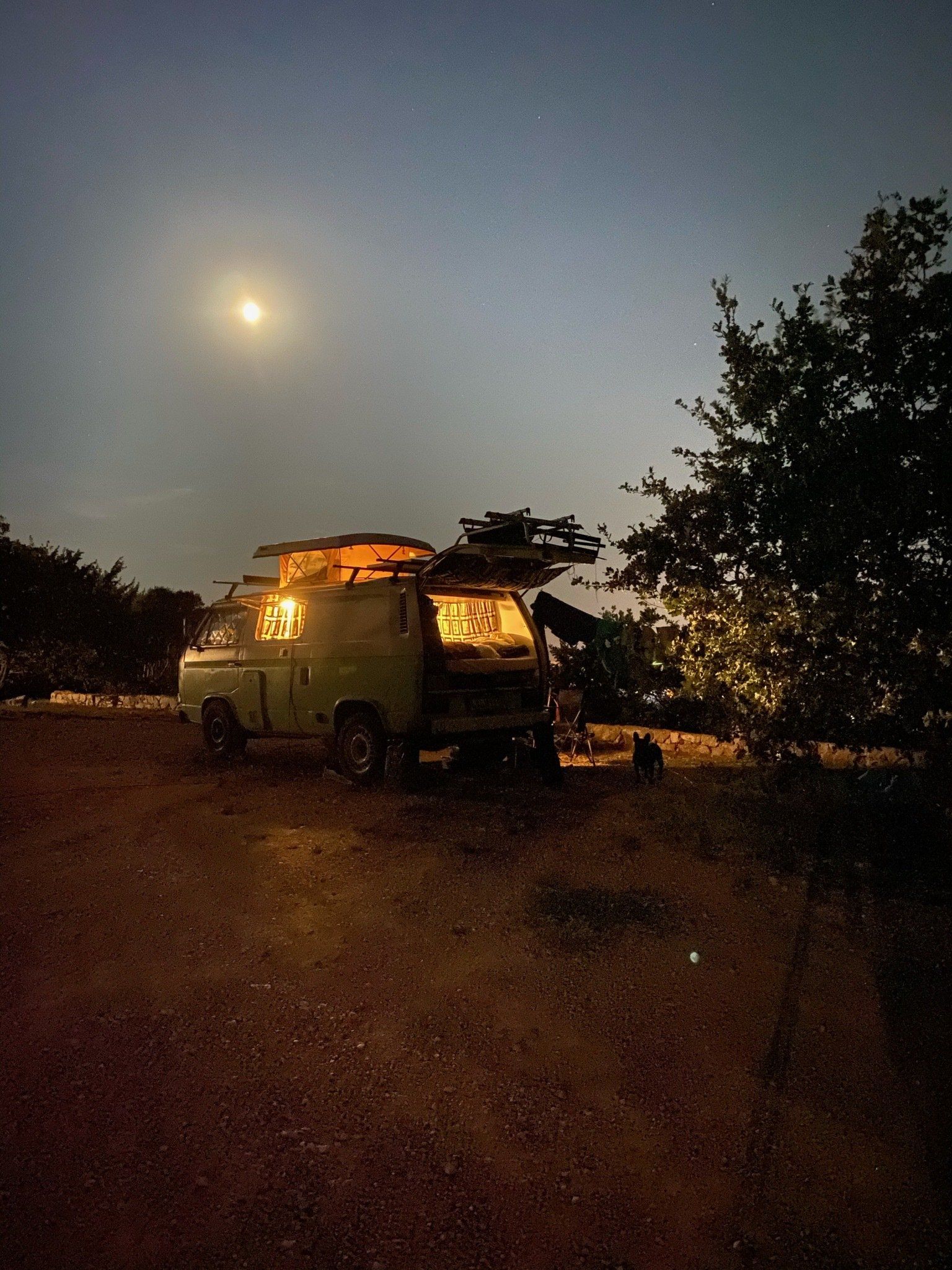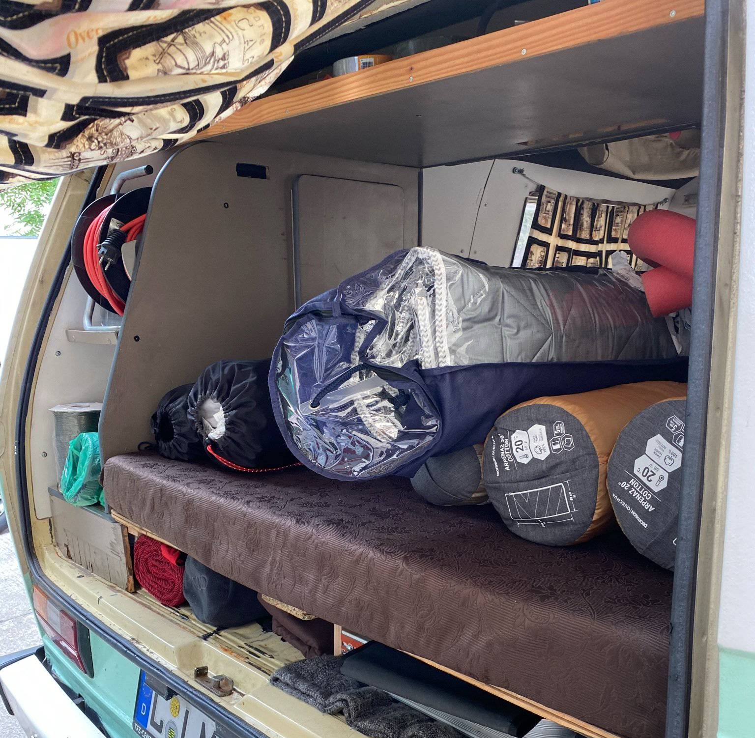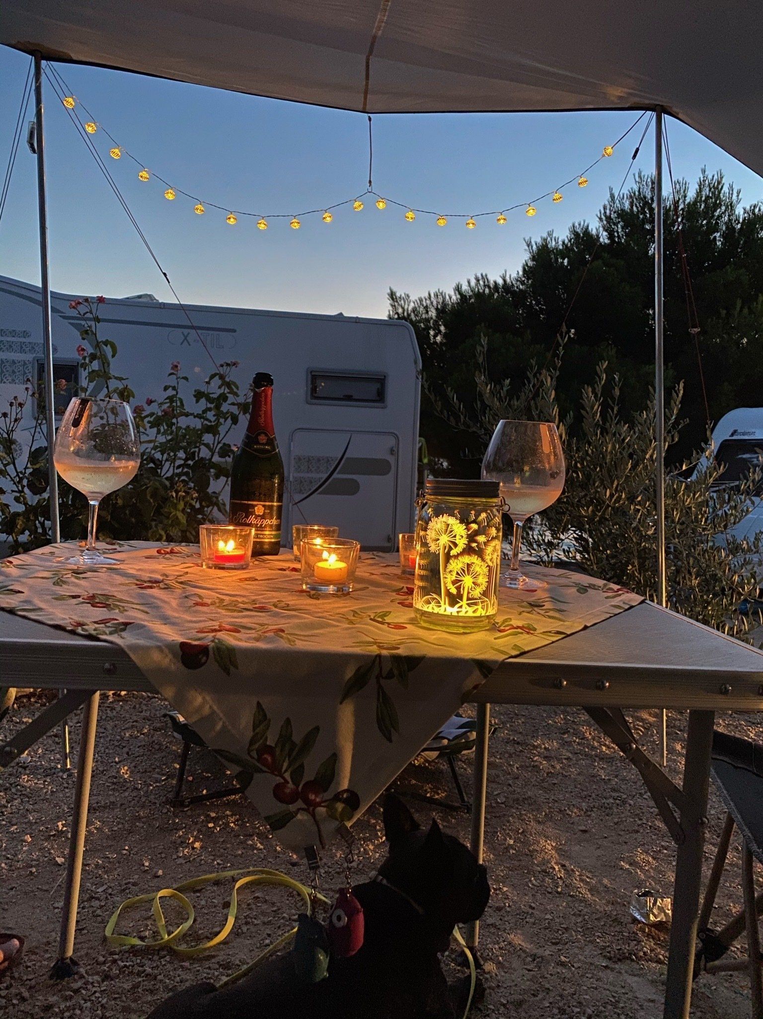 Das schöne an der kroatischen Autobahn ist die Temperaturanzeige… Wir freuten uns über jedes Grad mehr. Unser nächster Spot befand sich kurz vor Primošten im Camp Sunset. Von der Teichstuben bis dorthin waren es nur knapp 490km - also 5,5h mit der Berta. Leider hatten wir an den Grenzen schon knapp 2h verloren. Dennoch waren wir gut in der Zeit als wir gegen 12 Uhr in Grebaštica ankamen, um noch etwas Brot und Gemüse einzukaufen und natürlich Geld zu wechseln. Nachdem wir alles erledigt hatten, lagen noch 8 km vor uns - doch unsere Berta wollte nicht mehr. Sie machte keinen Mucks und sprang nicht mehr an. Meine gute Laune schlug selbstverständlich in Null Komma nix um. Wir riefen unseren Bullischrauber an, der uns mittels Videotelefonie und seelischer Unterstützung half. Erstmal musste aber der ganze Kofferraum ausgeräumt werden, um an den Motor zu kommen. Irgendwie hatte sich das Kabel vom Anlasser leicht gelöst. Wir wackelten etwas daran herum und versuchten es fester dranzustecken und schwupp sprang Berta wieder an, als wäre nichts gewesen. Also packten wir alles, was wir am Straßenrand ausgeräumt hatten, wieder ein und fuhren die letzten paar Kilometer bis zum Camp.