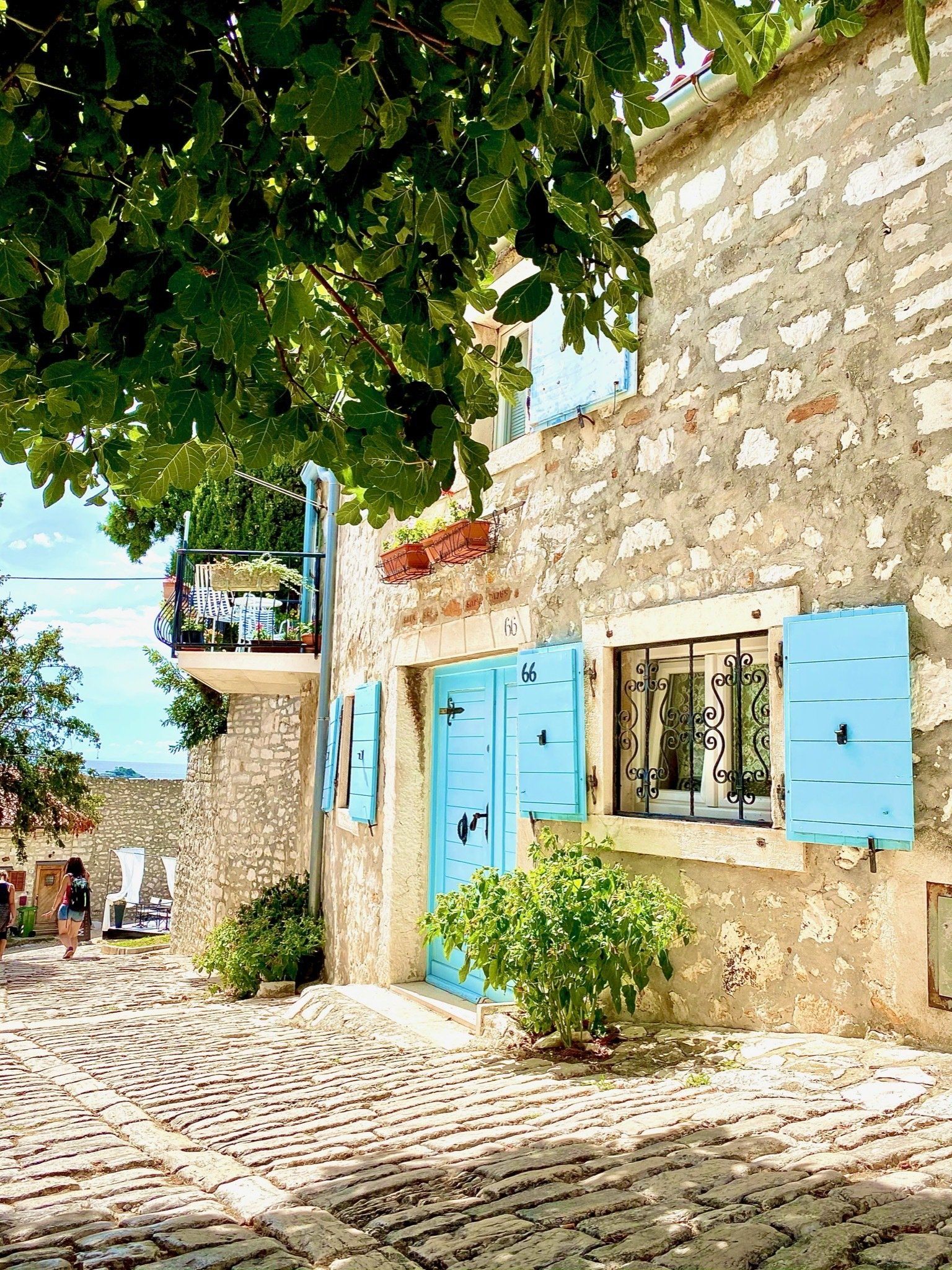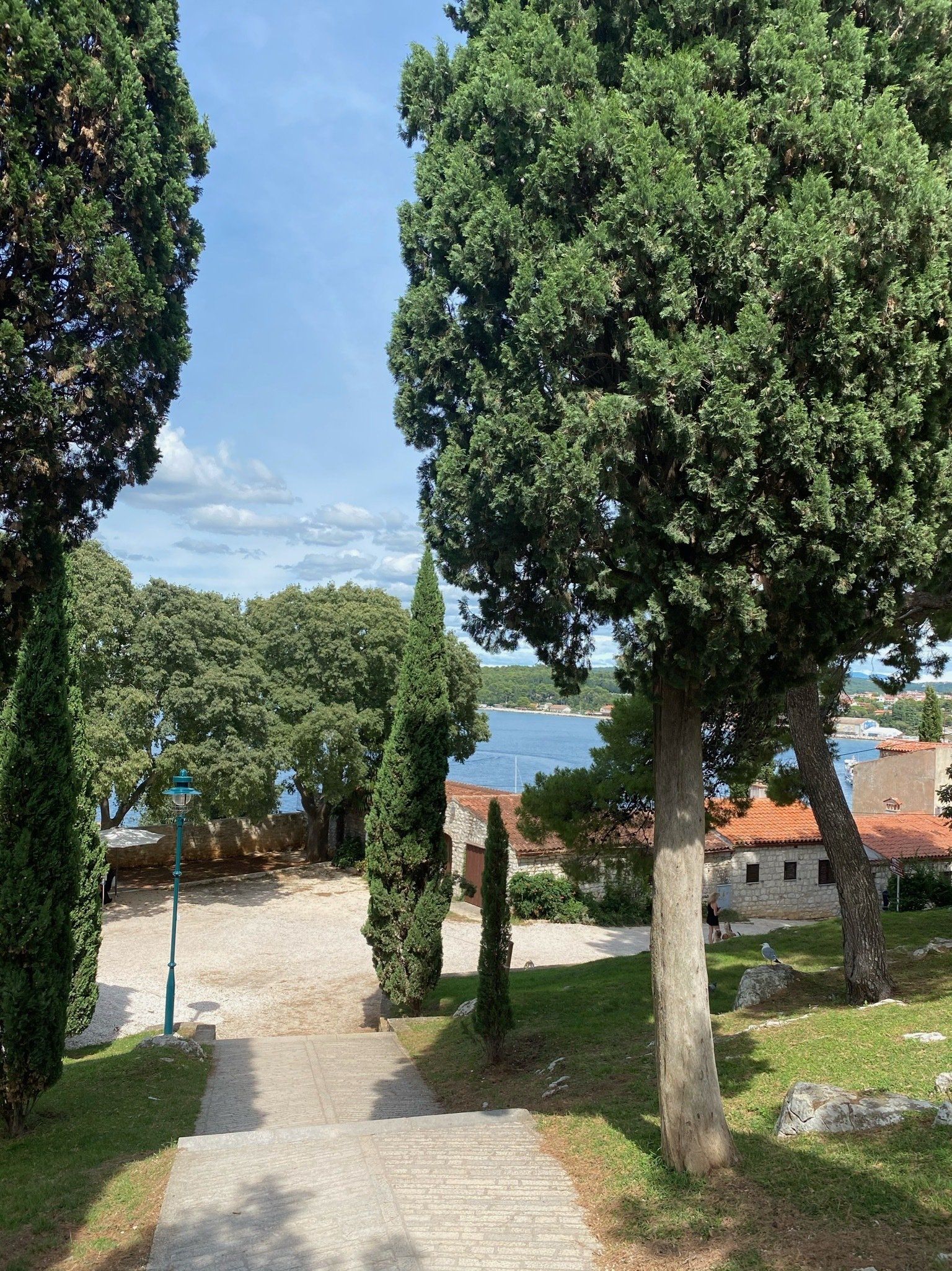 Nach 2 zauberhaften Abenden mit dem Blick auf die Stadt Punat machten wir uns auf den Weg nach Istrien. Wir entschieden uns für die Route über das Gebirge und den Učka Nationalpark. Eine herrliche Route mit vielen Serpentinen und zum Teil einer ordentlichen Steigung. Wir wollten auf dem Weg nach Funtana, dort hatten wir den nächsten Platz reserviert, uns noch die kleinste Stadt der Welt - Hum - ansehen. Leider machten unsere Bremsen schlapp als wir eine gefühlte Ewigkeit einem stark beladenen Pick Up mit Anhänger bergab folgten. Die Bremsen quietschten immer und immer mehr und wir trauten dem Frieden nicht. Also hielten wir mitten im Nirgendwo an und machten eine Pause. Leider streikte dann auch noch der Anlasser - also warteten wir über eine Stunde, bis sich unsere Berta komplett ausgekühlt hatte und wieder starten wollte. Zum Glück hatten wir ein schattiges Plätzchen erwischt. Nach diesem Erlebnis ist uns die Lust nach einem weiteren Stop vergangen, sodass wir den direkten Weg vom Učka Nationalpark nach Funtana nahmen. Wir kamen am späten Nachmittag auf dem Platz an und waren von der Lage unseres Stellplatzes mehr als entsetzt. Dicht an dicht reihten sich Camper, Zelte und Wohnwägen. Und also das nicht schon schlimm genug wäre, wurden wir noch so beguckt, dass wir uns wie im Zoo fühlten. Wir gingen also zur Rezeption und baten um einen anderen Platz. Die Dame vor Ort war sehr zuvorkommend, sodass wir uns einen Platz auf dem Camp aussuchen konnten. Schliesslich waren wir mit unserer Wahl ganz zufrieden. Ich war circa das letzte Mal vor 10 Jahren in Funtana, aber nichts desto trotz fühlte es sich heimisch an. Schließlich war ich seit 1996 fast jedes Jahr auf Istrien im Sommerurlaub.