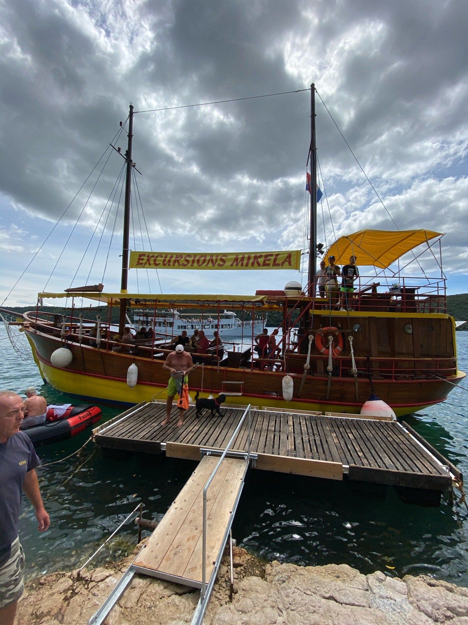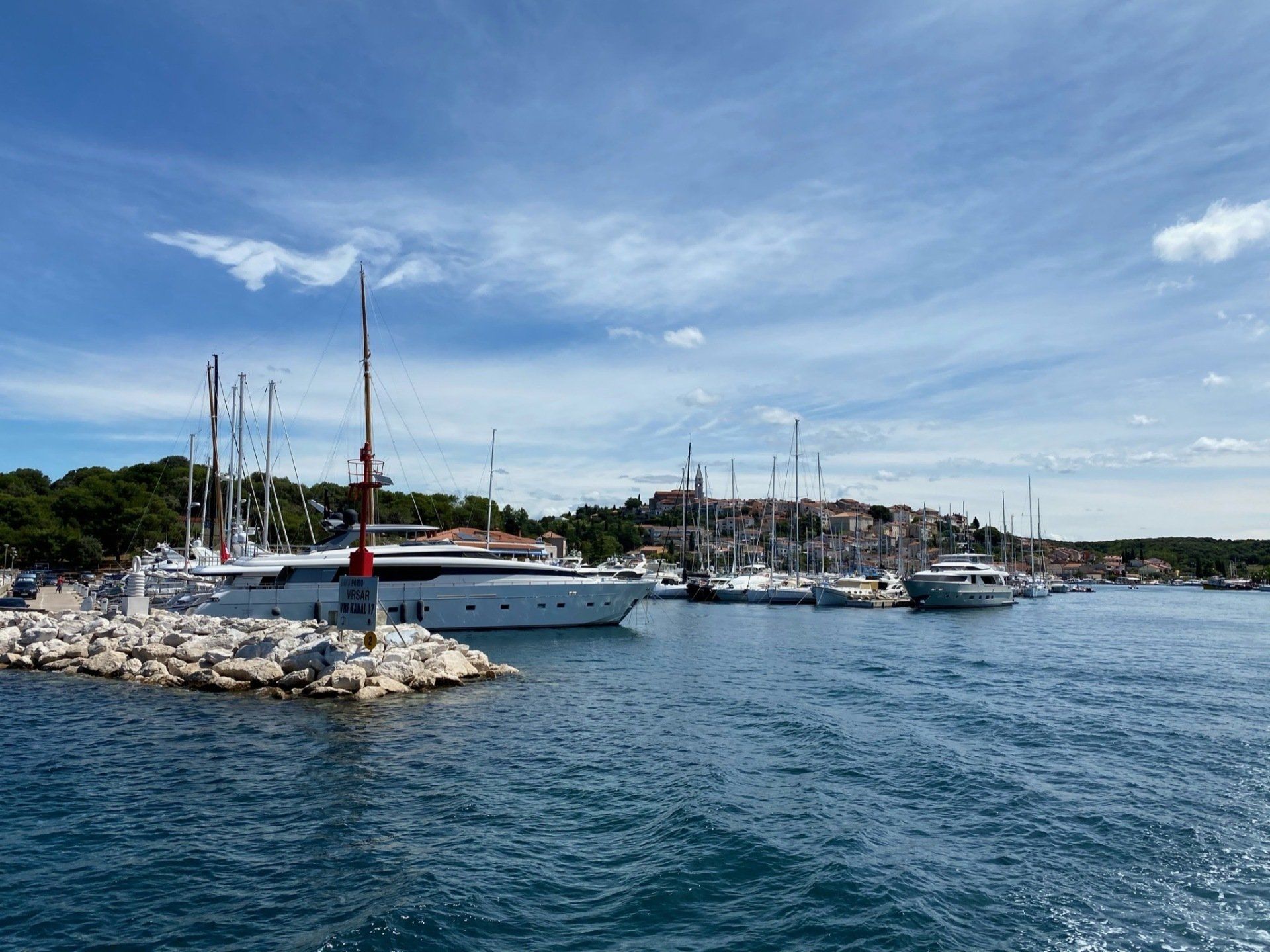 Den Bootsausflug haben wir von Vrsar aus gestartet. Auf dem Schiff von Mikaela gab es neben Wein, Wasser und selbstgebranntem Schnaps auch Mittagessen. Wir entscheiden uns für Fisch und Krautsalat. Als wir aßen versammelten sich schon die Möwen am Himmel und freuten sich auf die Gräten und Fischreste. Sie kamen sogar so nah an uns heran, dass sie die Gräten aus unserer Hand fraßen. Insgesamt hält das Boot einmal im Limski Fjörd an der Piratenhöhle und einmal in der wundervollen Stadt Rovinj an. Der Ausflug war wirklich toll.