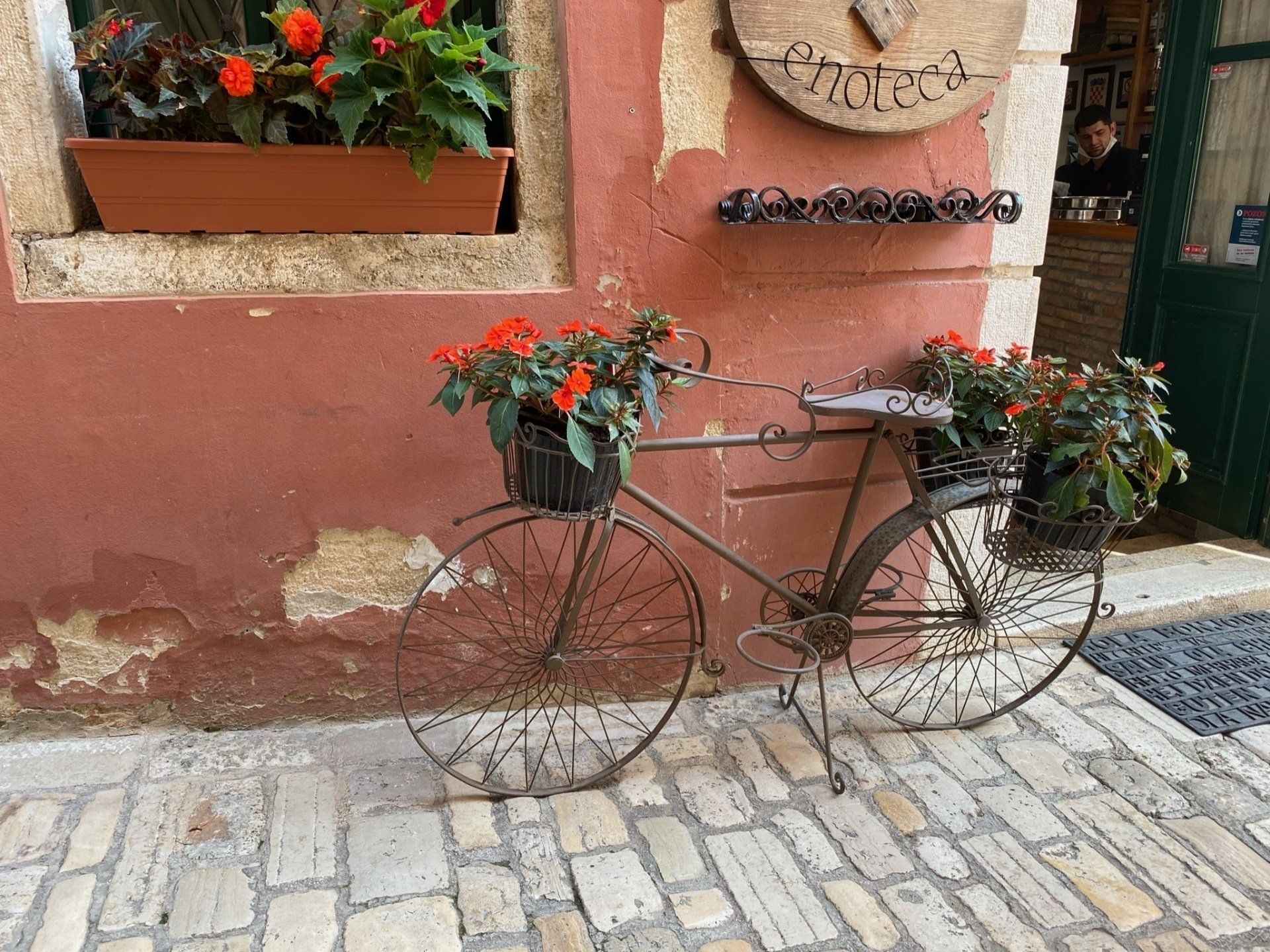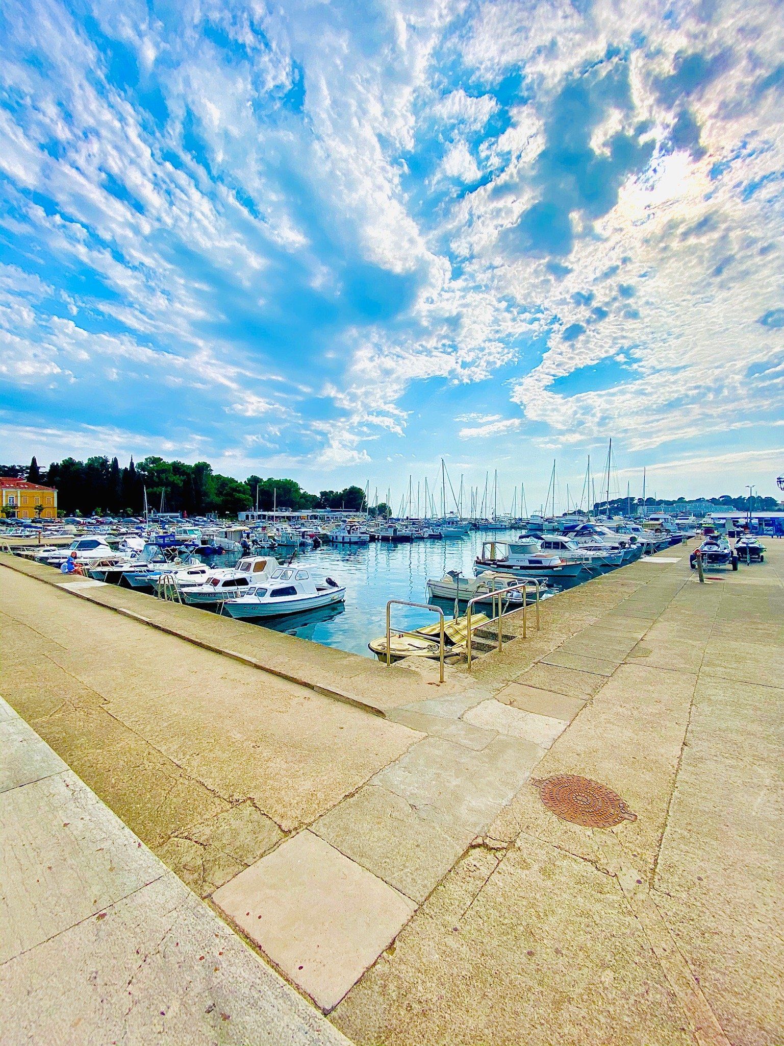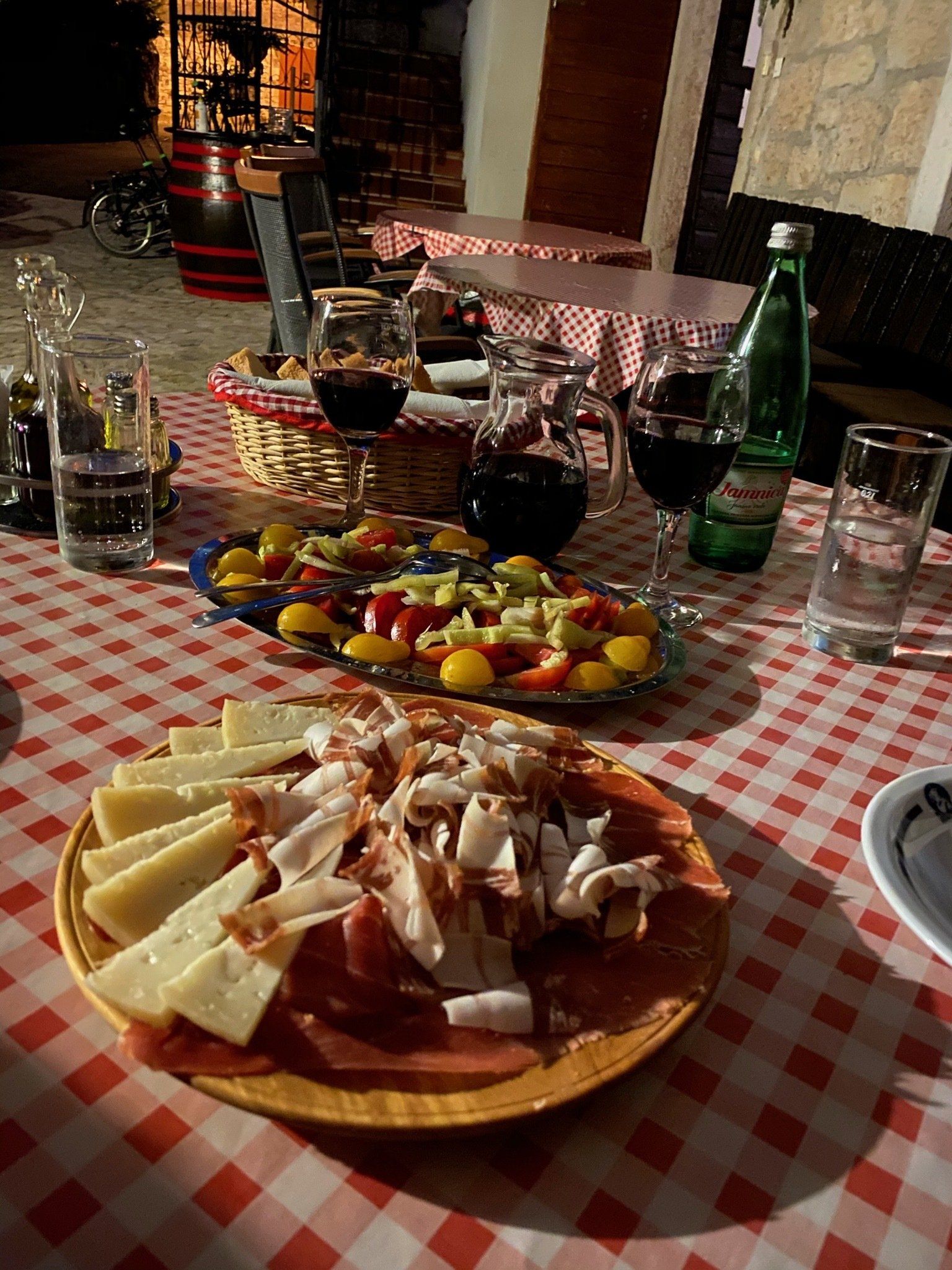 Vom Camp in Funtana kann man wunderbar mit dem Fahrrad die Küste erkunden. Auf den Weg nach Porec durchquert man die vielen Lagunen und Campingplätze. So hat man die Möglichkeit auch immer mal einen Badestop zu machen. In Porec kann man die Räder am Hafen anschließen und die Altstadt zu Fuß erkunden. Viele Gässchen und Geschäfte laden zum entspannten Bummeln ein. Sowohl am Meer als auch in der Altstadt kann man gut und preiswert essen. Vor jedem Restaurant stehen die Kellner und bewerben ihre Speisen. Hier hat man die Qual der Wahl… Pizza, Meeresfrüchte und Fisch oder doch Fleisch ? Insgesamt habe ich in der gesamten Zeit auf dem Balkan noch nie schlecht gegessen. Wenn man noch ein bisschen weiter als bis nach Porec fährt, findet man im Hafen von Cervar Porat die wohl mit Abstand beste Fischgaststätte. Im Santa Maria sollte man aber abends in der Hauptsaison unbedingt reservieren. Auch wenn wir vegan leben, gönnen wir uns im Urlaub mal die ein oder andere Spezialität. Denn zum Reisen gehört für uns auf alle Fälle der Aspekt der Kulinarik.