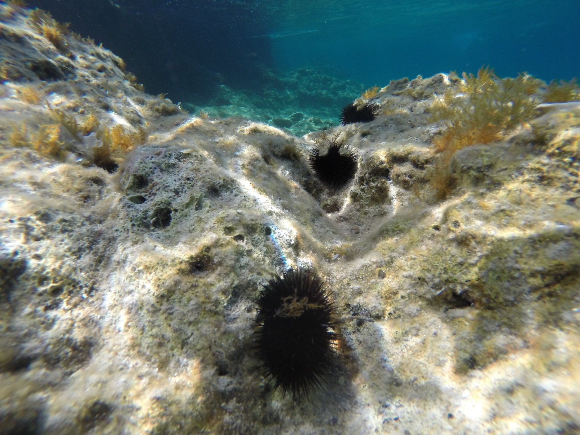Eines Nachtmittags machten wir uns auf, um den kleinen Hügel auf der gegenüberliegenden Straßenseite zu erklimmen. Von dort hatten wir einen phantastischen Blick auf die Bucht und konnten ungestört unsere Drohne steigen lassen.